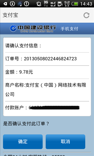 4.系统反显支付信息,您核对了相关的信息后,既可点击“确定”进行支付。